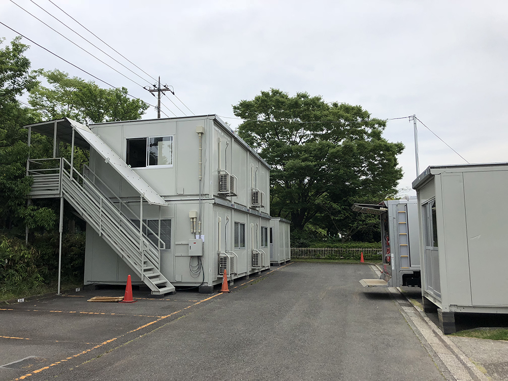 集合住宅大規模修繕工事に伴う事務所・休憩所・トイレをユニットハウスにて設置致しました。