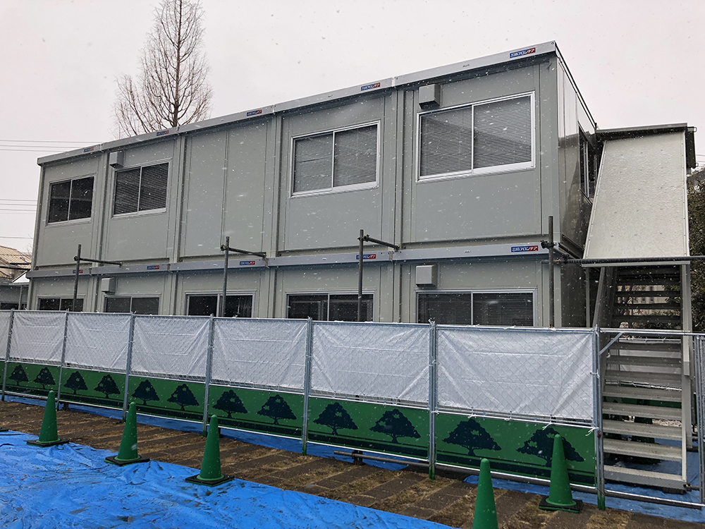 マンション大規模修繕工事に伴う事務所・休憩所をパネルハウスにて設置致しました。